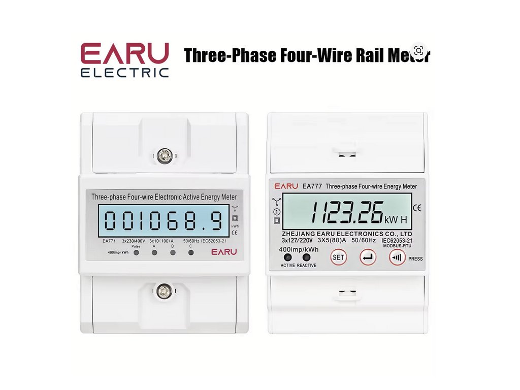 EA777 je třífázový digitální elektroměr s komunikací Modbus RTU (RS-485) určený pro měření spotřeby elektrické energie v sítích 3×230/400 V. Umožňuje měřit činnou energii (kWh) a základní elektrické veličiny: napětí, proud, výkon, účiník a frekvenci. Elektroměr je vhodný pro podružné měření, monitoring spotřeby a integraci do systémů řízení budov (BMS, Loxone, PLC).