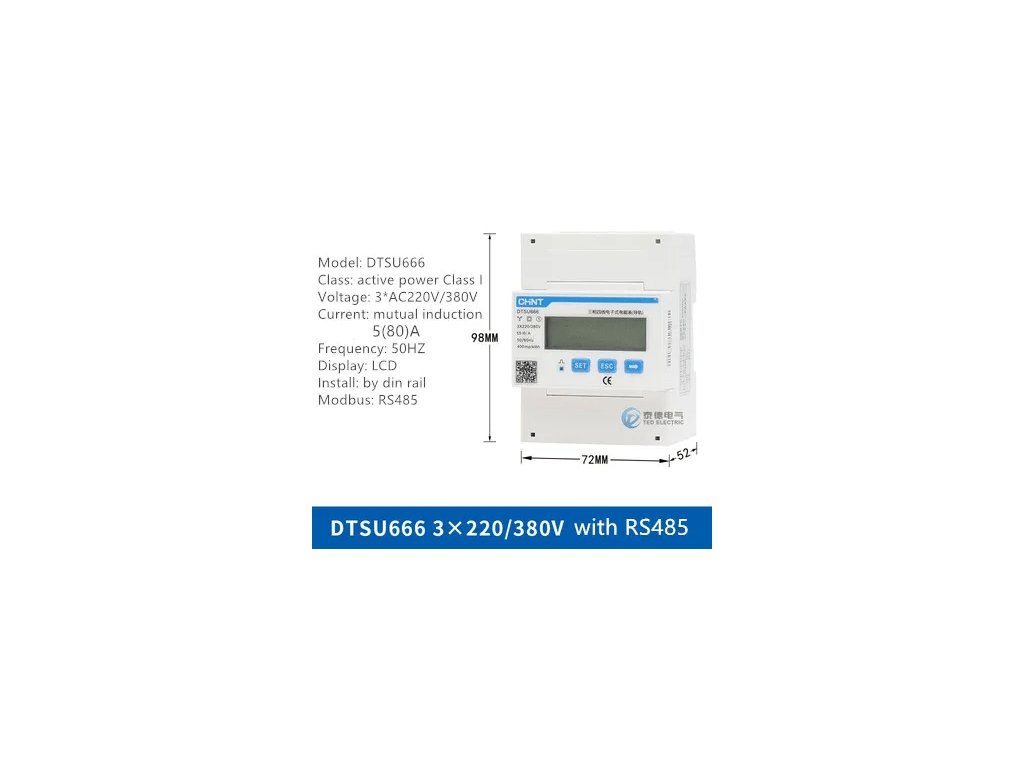 Chint DTSU666 Modbus Jedná o pokročilý multifunkční elektroměr, který vám poskytne ověřitelné parametry. Měřič nabízí měření:- napětí