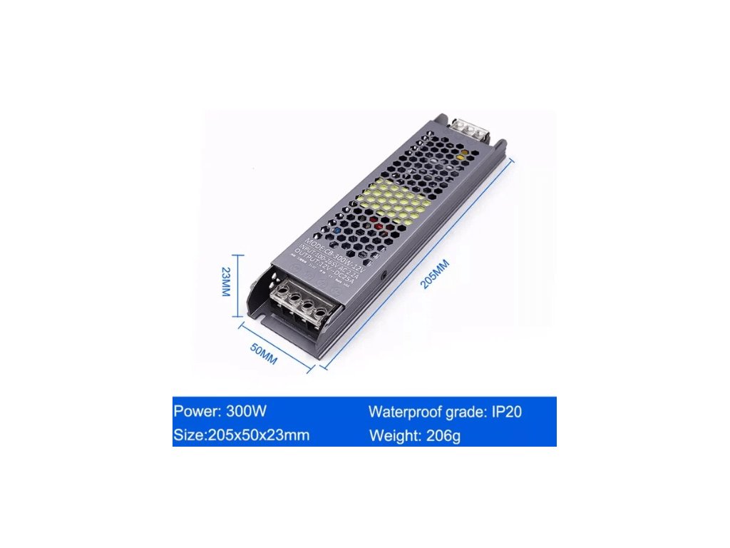 Tento ultratenký LED transformátor o výkonu 300W a výstupním napětí 24V je ideálním řešením pro napájení vašich LED pásků, lineárních světel, světelných panelů, světelných reklam a dalších náročných LED instalací. S tichým provozem a kompaktním designem se snadno integruje do jakéhokoli prostoru.