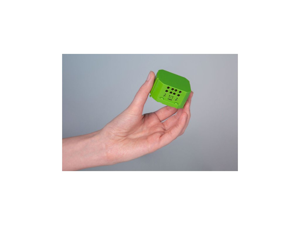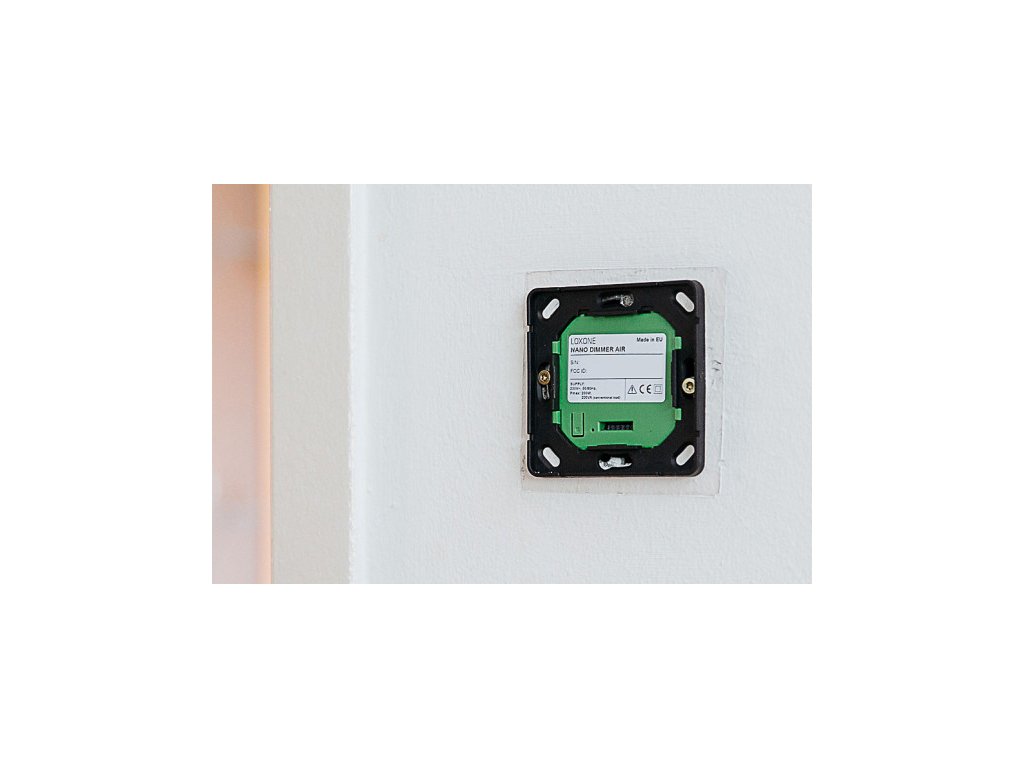 Díky rozměrům pouhých 53 × 53 × 31 mm je Nano Dimmer Air velmi kompaktní a skvěle pasuje do běžných instalačních krabic (např. za vypínače).