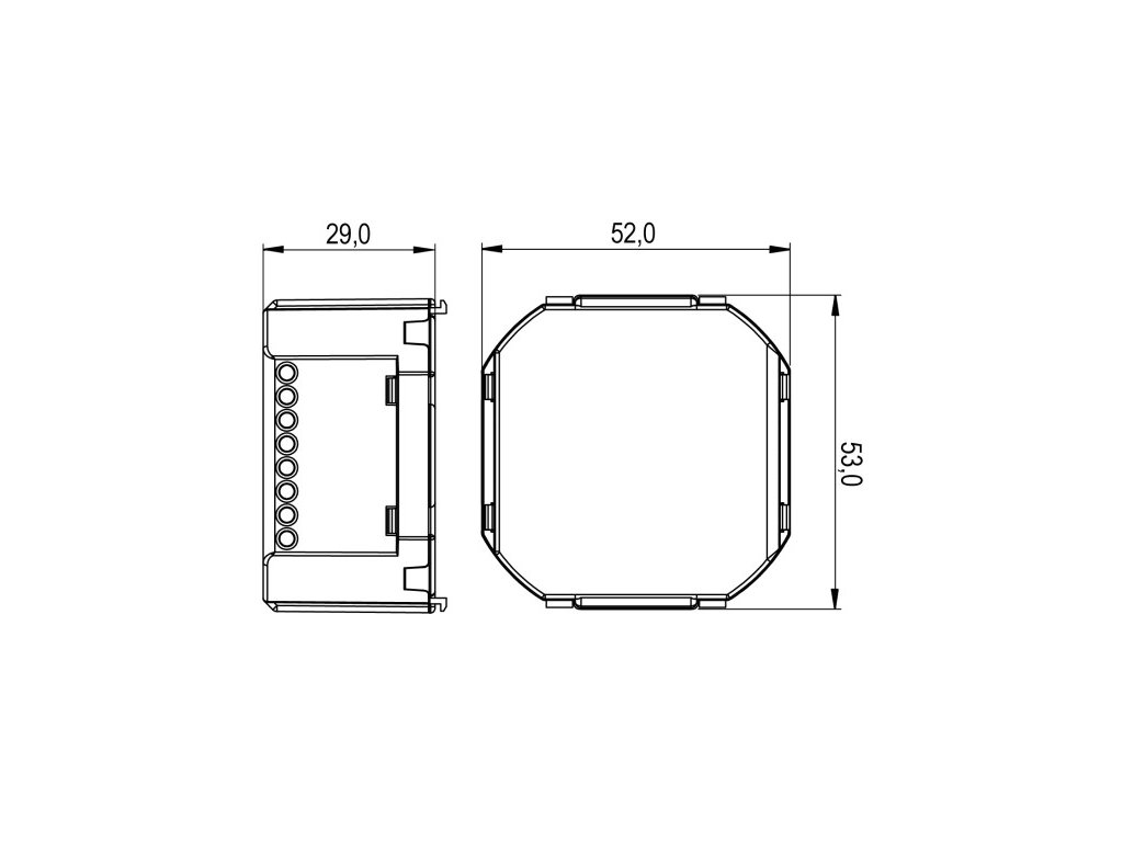 S rozměry 53 × 53 × 31 mm je Nano IO Air malý silák, který se vejde do běžných instalačních krabic za vypínače.