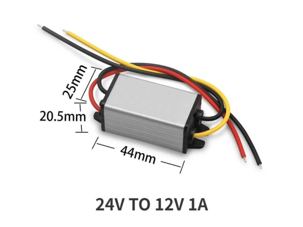 Vstupní napětí: 24V (s možností vstupu od 15V do 40V) Výstupní napětí: 12V Maximální proud: 1A (což odpovídá 12W výkonu) Účinnost konverze: 90% Teplotní odolnost při plném zatížení: 50 stupňů CelsiaDoplňkové parametry