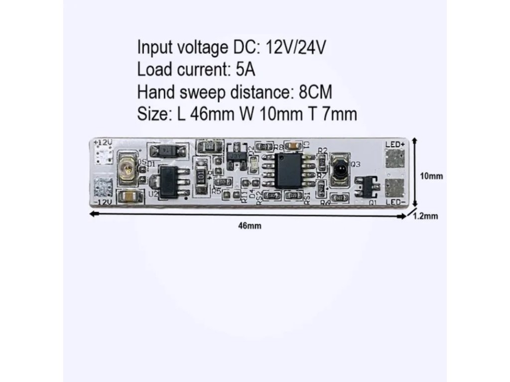 bezkontaktní ovladač LED pásků, aktivace přiblížením ruky, 12-24V, vhodné pro instalace LED pásků pod kuchyňskou linku