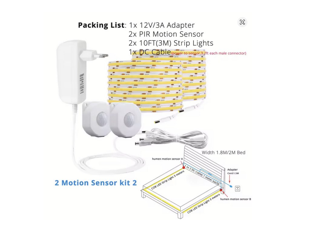 Sada světelného LED pásku s dvojitým senzorem pohybu