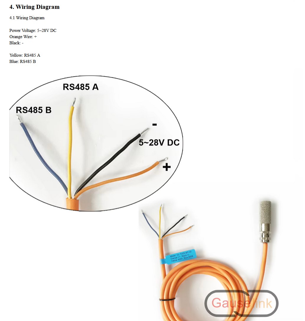 Saunové senzor-čidlo teploty a vlhkosti s vysokým rozsahem (-40 až 120 °C) | Modbus RS485