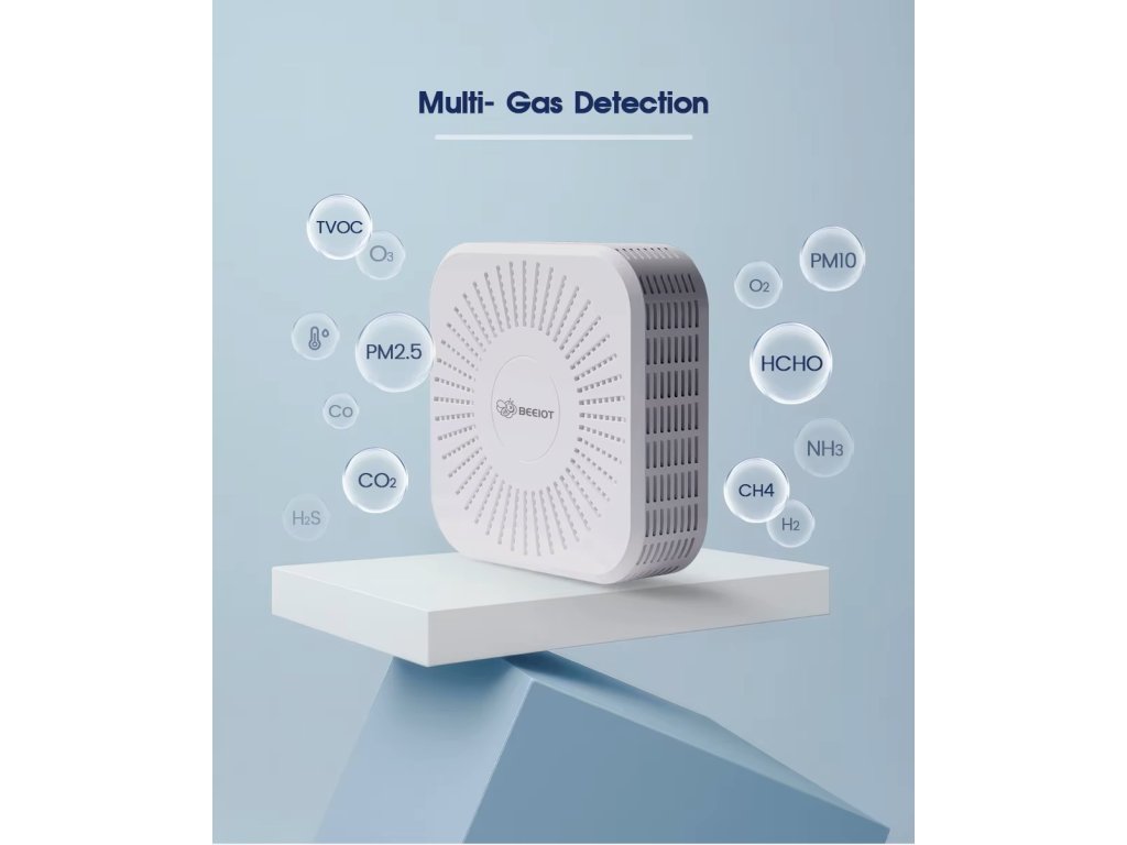 PM2.5, PM10, PM1.0, CO₂, HCHO, TVOC, CO, O₃, CH₄, O₂, NH₃, H₂S, NO₂, SO₂, teplota, vlhkost, intenzita osvětlení, PIR senzor, atmosférický tlak atd.